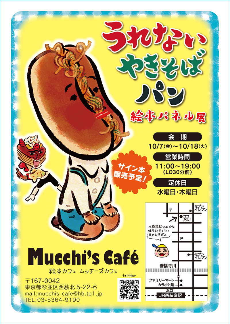 『うれないやきそばパン』絵本パネル展が、西荻窪ムッチーズカフェにて開催されます 終了しました