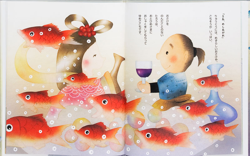 いじめられていた亀を助けたうらしまたろう。お礼に竜宮城で乙姫様の歓待を受け、玉手箱を土産にもらいます。しかし戻ってみるとまったく見知らぬ土地になっていて、玉手箱を開けてしまったたろうは・・・。