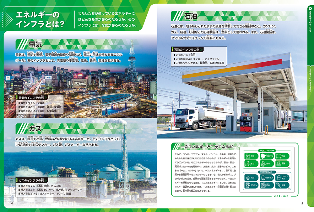 もし電気やガスや石油がなかったら、どうなるでしょう。私たちの命と暮らしを支えているのがインフラです。エネルギーに関するインフラには何があって、どのように運用されているのか、豊富な写真やイラストで解説。
