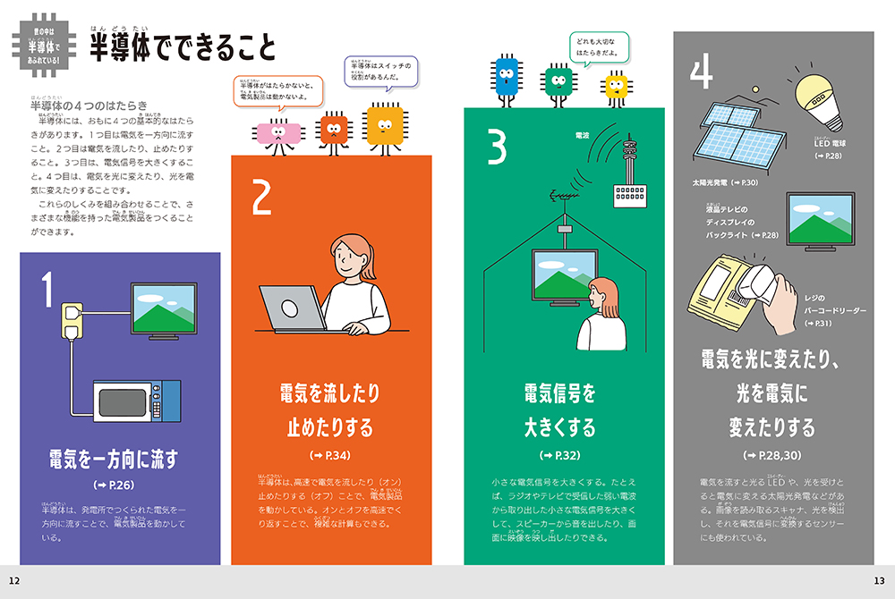 スマホ、パソコン、冷蔵庫、洗濯機などの電気製品から自動車まで身近なものに使われている半導体のひみつを図解でわかりやすく解説!