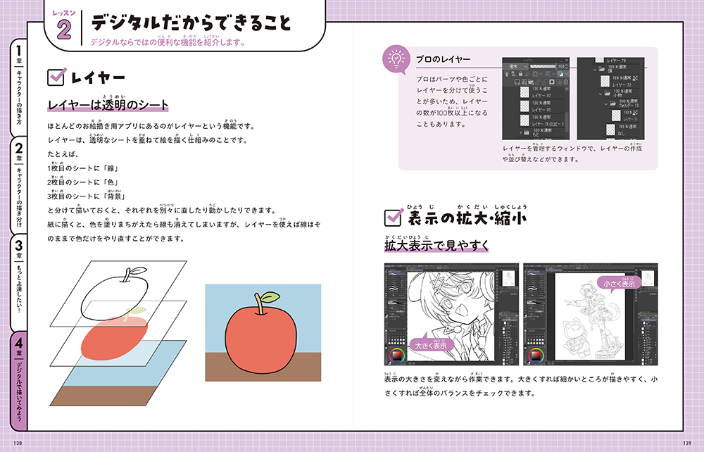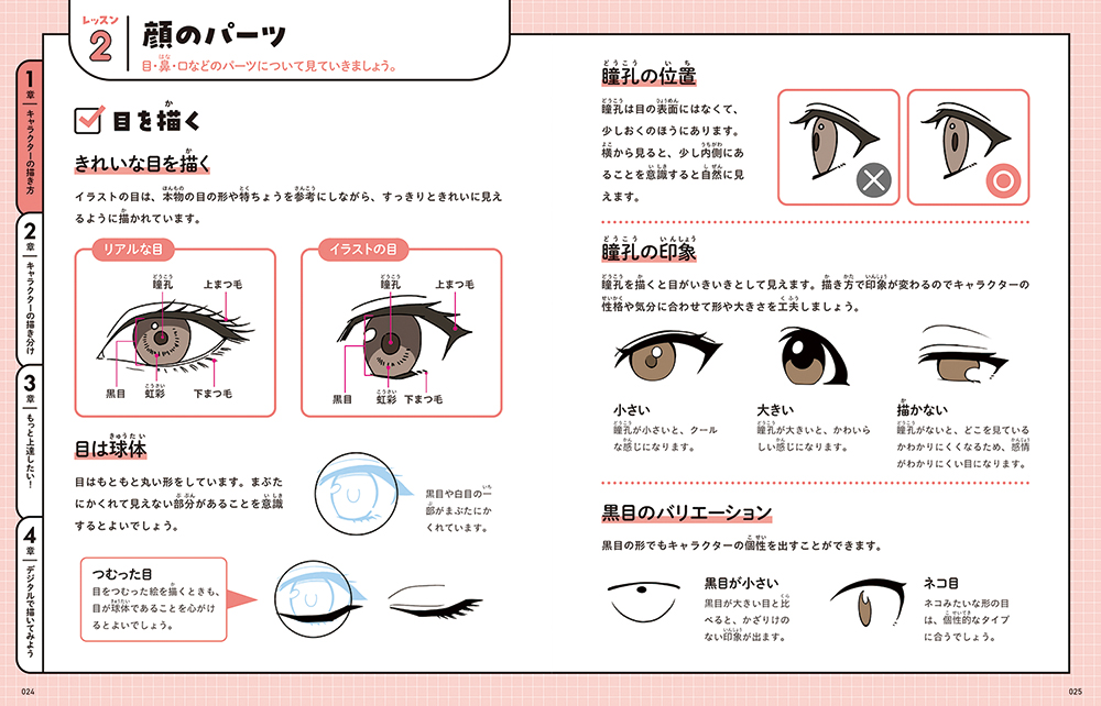 目、りんかく、手などのパーツごとに、描くコツをくわしく紹介。神絵師のインタビューや、デジタルイラストの基本まで充実の内容!